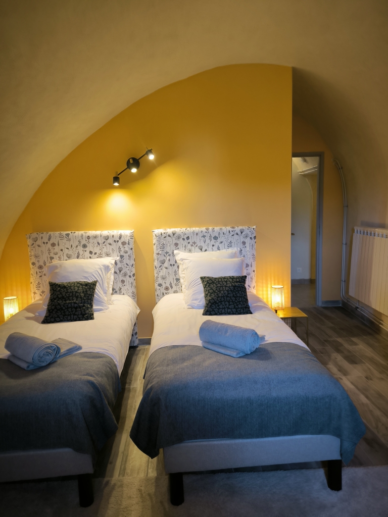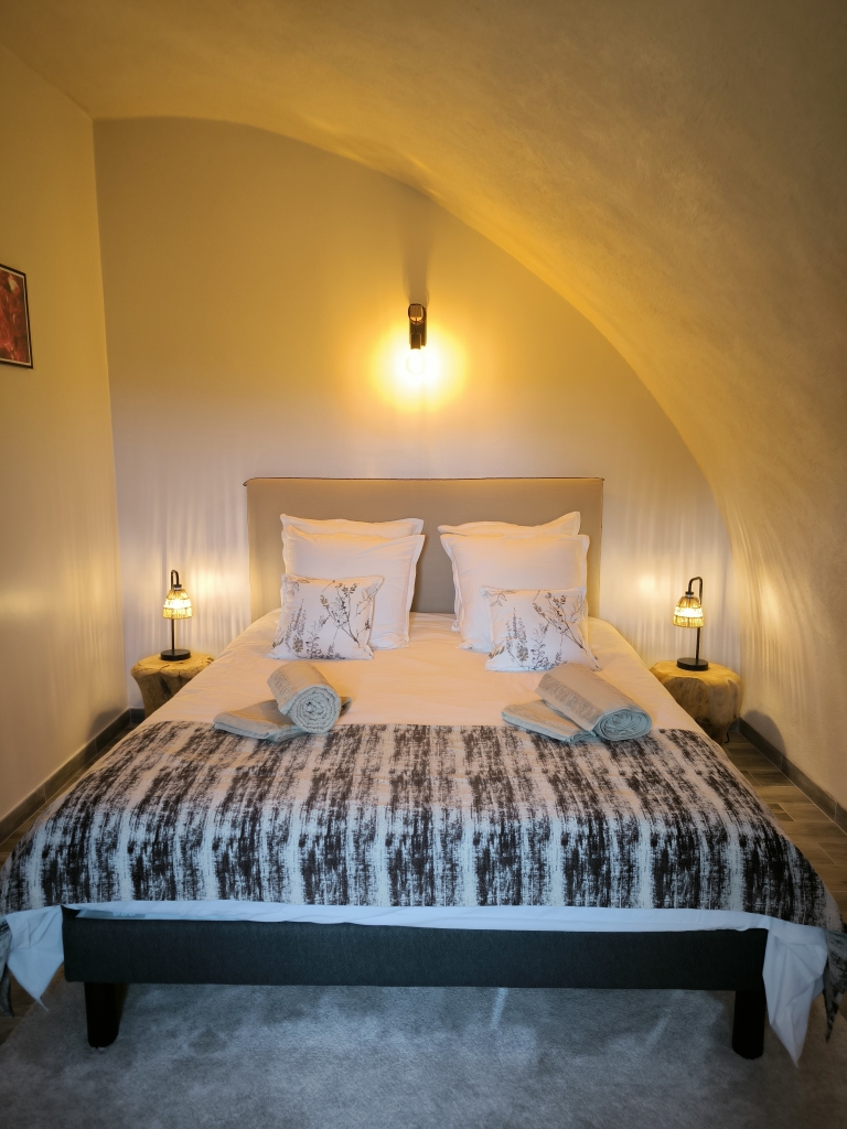 - Gîte "Le Chêne" (ouverture avril 2026) : capacité de couchage 9 personnes (3 chambres + 1 canapé-lit dans le salon).